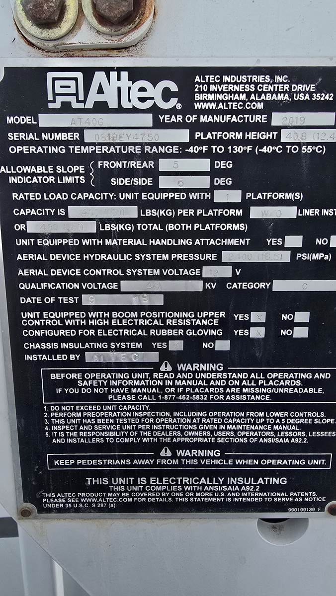 2019 INTERNATIONAL WORKSTAR 7300 4X4 & ALTEC 60' M.H INSULATED BOOM **CALIFORNIA TRUCK**