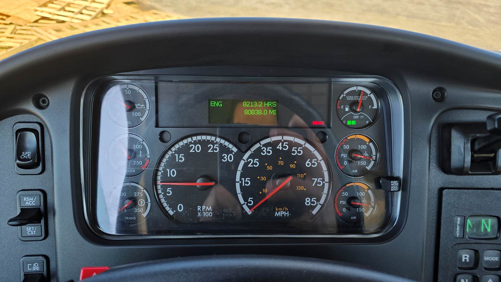 33,000 GVWR. 8210 hours. Air Brakes. Exhaust Brake. 5.57 Gear Ratio. 190" Wheelbase. Heat & A/C work great. Pintle Hitch with Rear Air Supply, 7 Pin Round Trailer Plug and Draw-Tite Integrated Trailer Brake Controller.